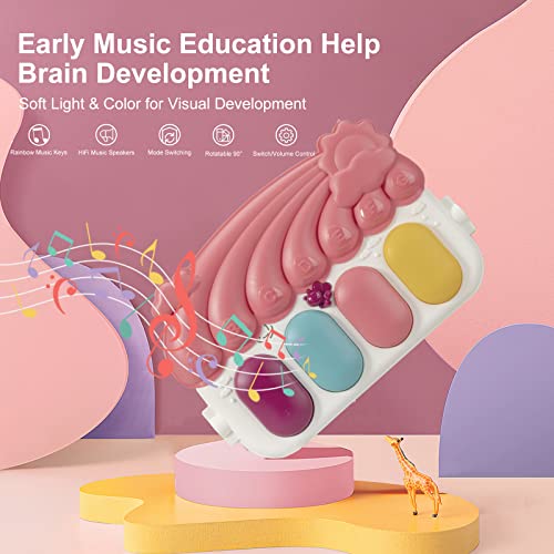 dearlomum Play Mat & Activity Gym, Piano Tummy Time Gym Mat with 5 Infant Sensory Toys, Music and Lights, Gifts for Newborns 0–12 Months (Pink)