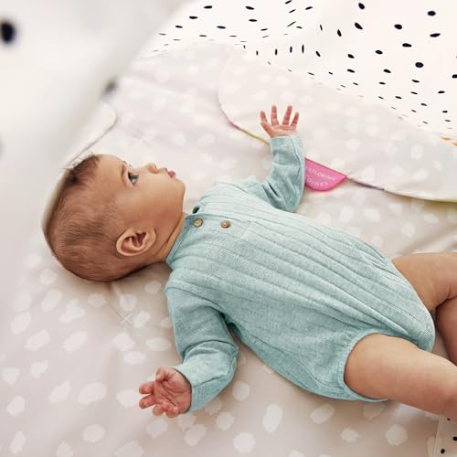 – Removable accessories for stage-based motor development: Organic Cotton High Contrast Montessori Ball, sustainably-sourced Wooden Batting Ring, and Organic Cotton Teether.