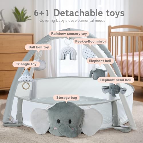 5-IN-1 DYNAMIC BABY GYM: Elevate your baby’s developmental journey with our versatile baby play gym. It effortlessly transforms into a play mat, tummy time mat, baby gym,ball pit (Balls not included), catering to each developmental stage from 0 to 36 months. Watch your little one explore, learn, and have endless fun.