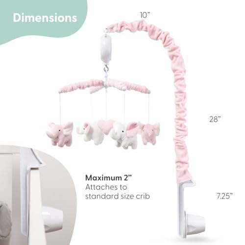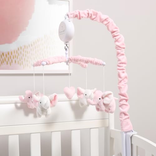 The Peanutshell Crib Mobile for Girls – Soft Pink Musical Baby Crib Mobile with 12 Lullabies, Cute Elephant Baby Pink Elephant Nursery Decor