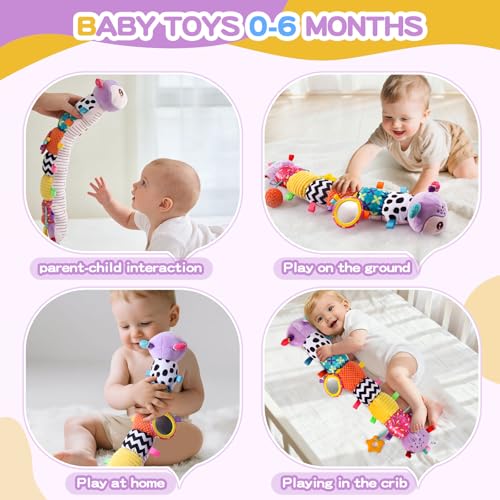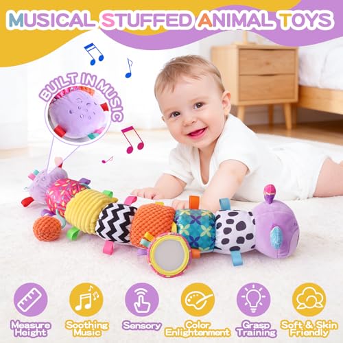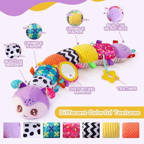 Baby Toys 0-6 Months, Musical Toys for Purple Caterpillar, Infant Stuffed Animal Soft Sensory Toys with Crinkle、 Rattles and Textures, Tummy Time Toys for Newborn Boys Girls 0 3 6 12 Months