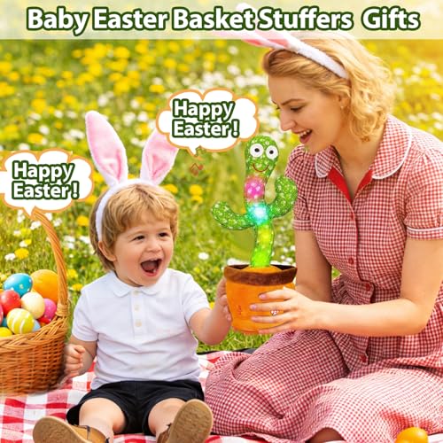 Dancing Talking Cactus Toy, Baby Singing Recording Mimicking Cactus Toy, Repeats What You Say, Musical Interactive Infant Toddler Toys for 1 Year Old Boys Girls, Baby Easter Basket Stuffers Gifts