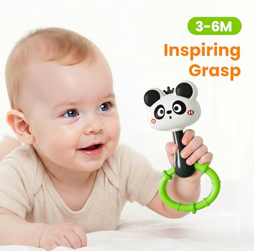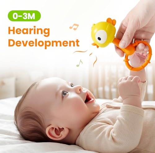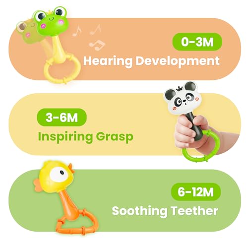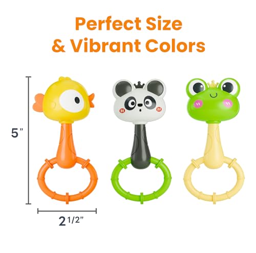 iPlay, iLearn Baby Maracas Rattle Toy, Infant Animal Shaker Rattles Set, Newborn Sensory Teething Rings, Tummy Time Carseat Stroller Crib Toy, Birthday Gift 3 4 6 7 9 12 18 Month Old Toddler Girl Boy