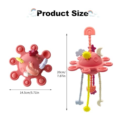 【Safe, Silicone Teething Toy】: Made from BPA-free, food-grade silicone, this montessori toys for 1 year old is soft, chewable, and provides soothing relief for teething. This sensory toys helps babies develop their chewing skills in a safe and enjoyable way, making this montessori pull string toy an ideal choice for exploring different textures. With this toy, you can avoid the worry of your baby chewing on things like data cables