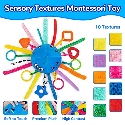 teytoy Sensory Toy, Texture Toys for Babies with Rattle, Autism Sensory Toys Jellyfish Shape Tactile Sensory Toys with 10 Textures, Baby Sensory Toys for 0-3-6-18 Months Soft Baby Toys with Teethers