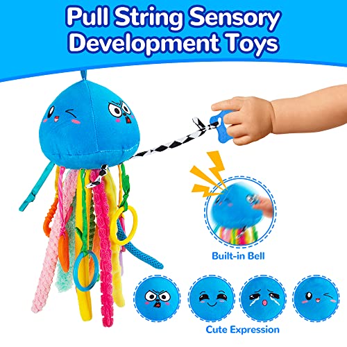 [Comfortable, Safe and Softer] This jellyfish sensory toys for babies are filled with highly elastic pp cotton, which is softer and more skin-friendly than silicone products for babies. Teethers are made of 100% safe materials, non-toxic, BPA and Phthalate free. And pull strings are mainly made of premium plush, parents don’t need to worry about quality.