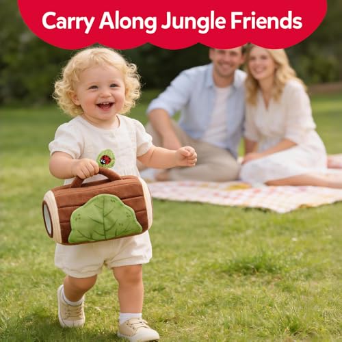 【Portable, Washable & Perfect for Everyday Play】The sturdy tree stump keeps all jungle friends neatly stored for easy organization at home or on the go. Ideal for tummy time, playtime, car rides, Easter visits, or travel, this plush sensory set is lightweight, durable, and machine washable—making everyday play easy and stress-free for parents.