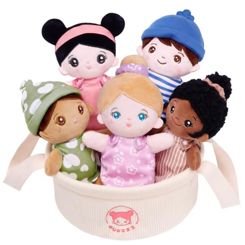 OUOZZZ Soft Baby Dolls – Set of 5 Multicultural 8.8″ Plush Dolls in Basket | Diversity Ethnic Snuggle Toys for Toddlers, Preschool, Daycare & Home