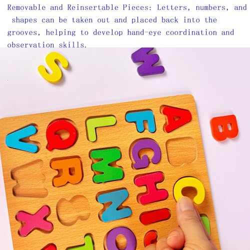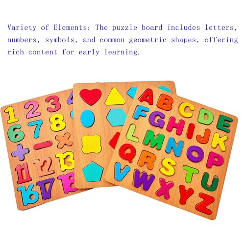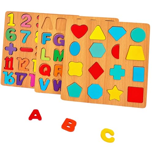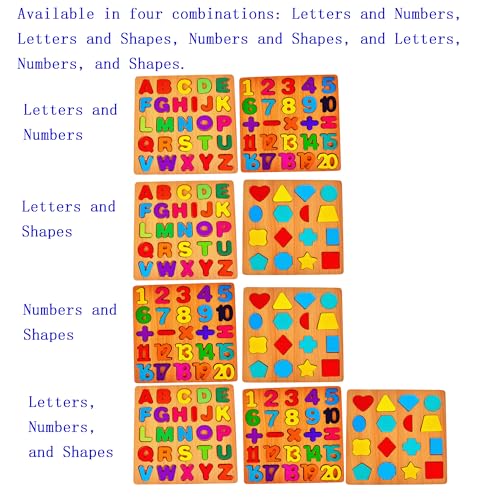 3PCS Wooden Alphabet, Number & Shape Puzzles for Toddlers – Educational Learning Toy (Choose from 3 Combinations) (Alphabet, Number & Shape)