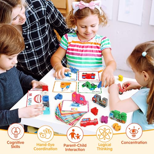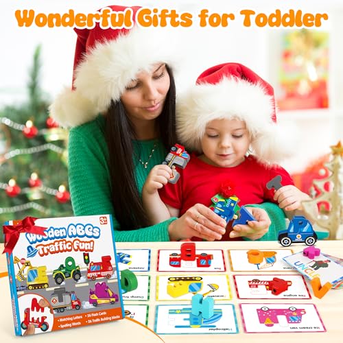 1. Double-Sided Fun for ABC & Sight Words: This alphabet matching game set offers twice the fun! Match the 52 colorful wooden traffic blocks to the vehicle patterns on the front of the 26 cards for letter recognition. Then, flip them over to match blocks to the sight words on the back, building early vocabulary and reading skills in an engaging, hands-on way