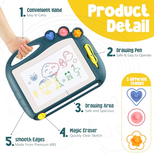 Easy To Draw And Erase: Magnetic doodle board features sliding eraser, allowing drawing to be quickly and easily erased. Simply pull the built-in smooth slider across the board to clear the surface, suit for children age of 1 2 3 year old boy girl.