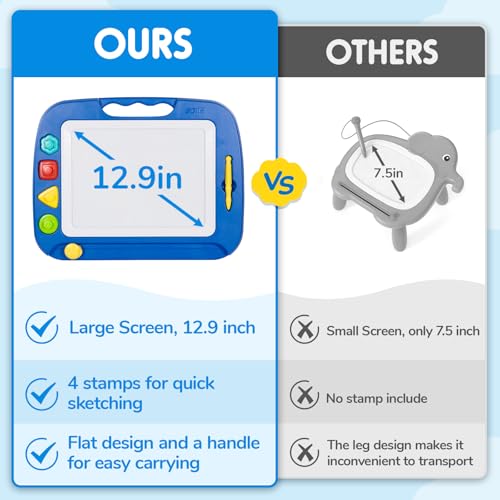 SGILE Toddler Toys for Kids, Large Magnetic Drawing Board for Birthday Gift, Toys for 1 2 3 4 Year Old Girls Boys, Etch & Sketch Pad with 4 Stamps, Learning and Educational, 16 ×13 in, Blue