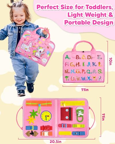 Exorany Busy Board Montessori Toys for Toddler Girl Birthday Gifts, Busy Book Sensory Learning Toys for Toddlers, Toddler Girl Airplane Car Travel Toy Educational Activities