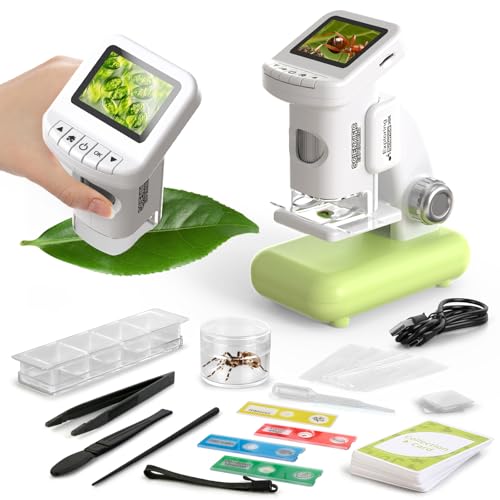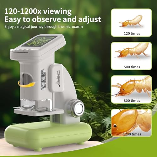 1200X Microscope for Kids 4K with 2 inch Screen STEM Digital Science Kit Rechargeable Handheld Mini Pocket Children Students Slides Portable Gift for Kids Ages 6 to 12 (Green)