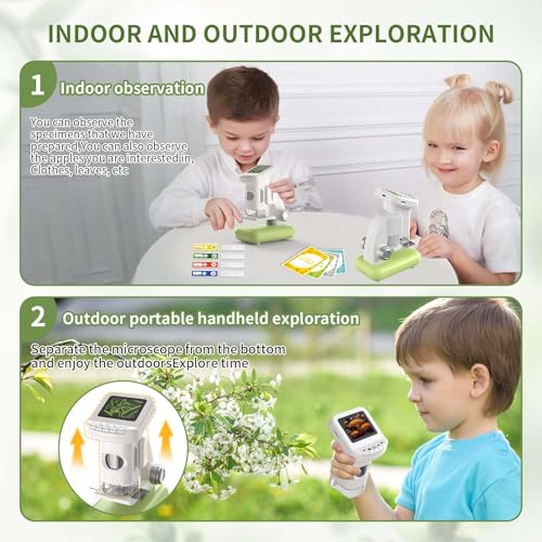 Handheld and Portable Microscope – Compact and lightweight for handheld outdoor exploration or stable indoor viewing on the detachable stand. Perfect for field trips, classroom activities, or backyard discovery