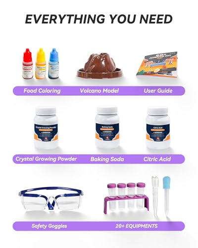 𝗔𝗹𝗹-𝗜𝗻𝗰𝗹𝘂𝘀𝗶𝘃𝗲 𝗞𝗶𝘁: Our science kit includes all the required experimental materials and tools, as well as a manual and safety goggles. The well-illustrated instruction guides help children effortlessly carry out the experiments and understand their scientific concepts with the assistance of their parents.