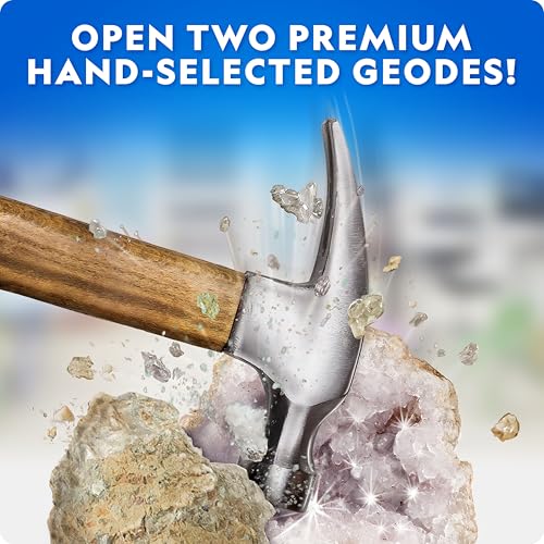 DISCOVER CRYSTAL TREASURE – Crack open two premium geodes to reveal dazzling crystal interiors—an unforgettable hands-on geology experience for kids.