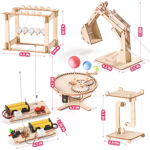 FUN PHYSICS EXPERIMENT MODEL: By assembling scientific woodworking kits, children can learn the concepts of various science experiments, as well as the principles of how motors work and energy conversion. These stem wooden building kits are perfect for children 8-10-12 who are curious and imaginative about science and engineering