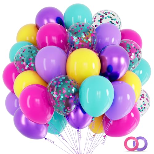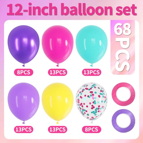 KAWKALSH 68pcs Pink Blue Purple Balloon, 12 Inches Hot Pink Metallic Purple Teal Yellow Balloons Confetti Balloons for Kids Magic Theme Birthday Decoration Baby Shower Engagement Party Supplies