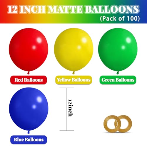 Red Blue Green Yellow Balloons 100 Pack 12 Inch Matte Blue Yellow Red Green Latex Balloon for Carnival Circus Balloon arch Kids Birthday Baby Shower Party Decorations