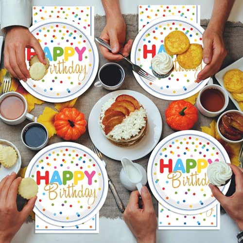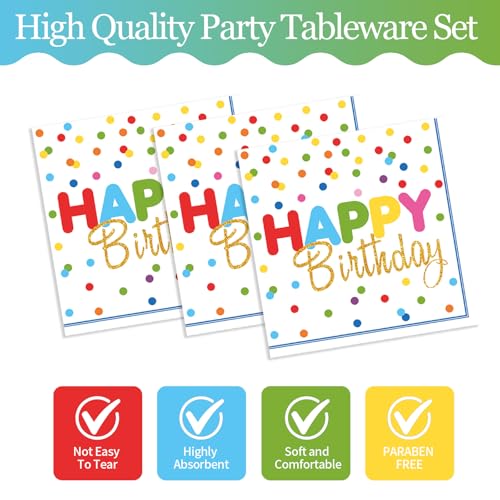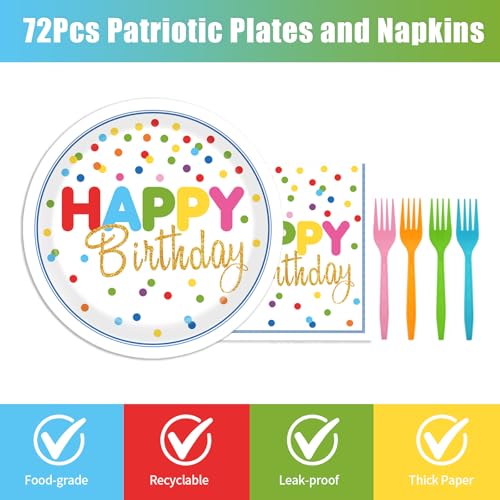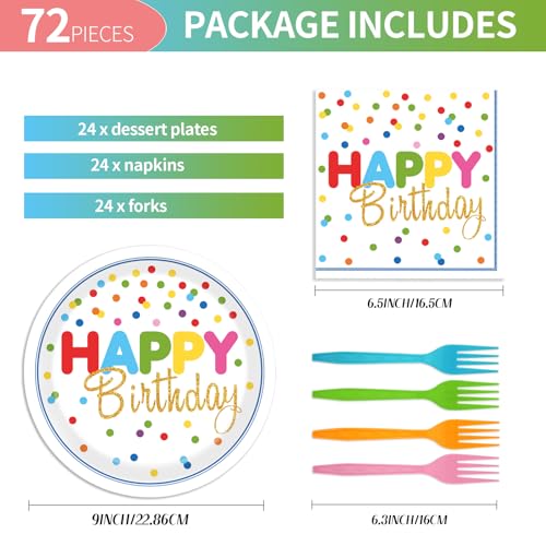 🎂 Complete Party Set: Our birthday party supplies include 24pcs 7-inch dessert plates, 24pcs paper napkins, and 24pcs forks, providing everything you need for a festive celebration with 24 guests.