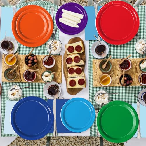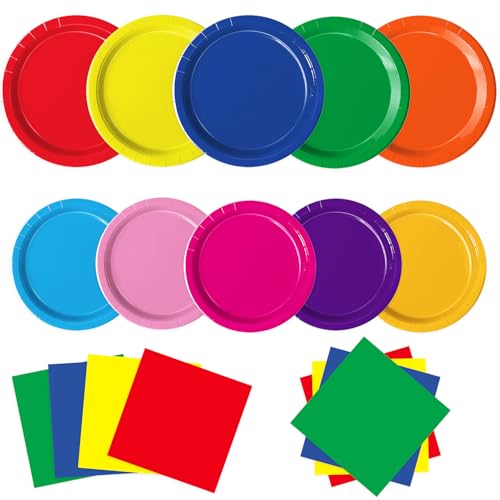 Oigco 60 PCS Colorful Paper Plates, Pastel Plates and Napkins, Rainbow Disposable Tableware for Birthday, Picnic, Baby Shower, Holidays, 10 Colors