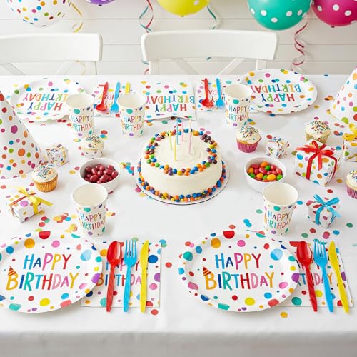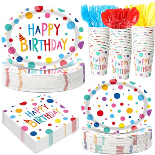Time Saving: the disposable nature of this happy birthday plates and napkins set is a real time saver; After the party, there’s no need for hours of washing up; Simply toss the items, allowing you to spend more quality time with your friends and family during the celebration
