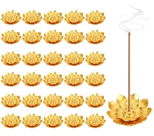 30 Pcs Diwali Gifts Bulk, Lotus Incense Holder, Indian Return Gifts for Pooja Bulk, Gold Lotus Incense Sticks Holder