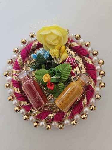 Haldi Kumkum Return Gift (Pack of 8) | Pooja Gift | Party Favor | Thamboolam| Turmeric & kumkum (Round Platter)