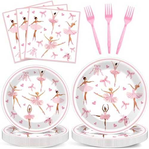 96PCS Ballerina Birthday Party Paper Plates and Napkins Set Ballet Party Paper Plates Disposable Decor Ballerina Girl Theme Parties Set for Kids Dancing Girls Ballet Birthday Decorations
