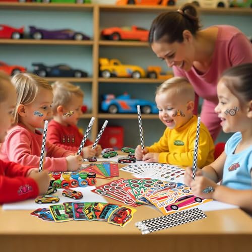 Reliable Material:our racecar party favor are mainly quality paper, plastic, nontoxic, safe material, sturdy to use. You can give race car stationery items as fast race car goodie bags or classroom gift exchang for classmates or kids