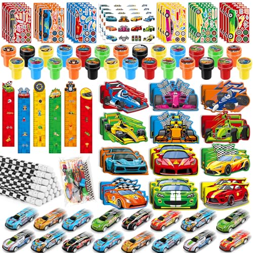 BenLouis 96Pcs Race Car Party Favors Racing Theme School Stationery Set Bulk for Kids Fast Racecar Wheel Birthday Party Goodie Bag Stuffers Classroom Gifts Rewards Pinata Filler
