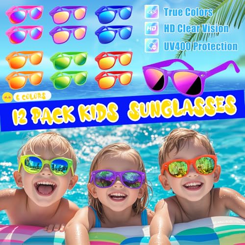 Wonrynn Summer Beach Pool Toys Party Favors for Kids has 158 pieces of beach party toys, including 12 colorful kids sunglasses, 12 inflatable beach balls, 12 mini water squirts in 6 colors, 12 sea creature-themed bubble wands, 36 colorful acrylic shells, 12 sea ocean theme Inking stamps in 6 colors, 12 summer beach-patterned gift bags, and 50 ocean-themed stickers. Cool colorful beach party favors are perfect for providing the kids with a great water battle together, spending hours of summer happy time! These pool party favors for kids’ goodie bags are sure to be a hit at your kid’s party!