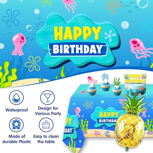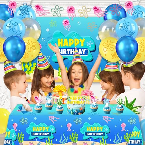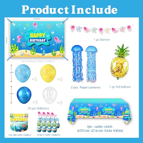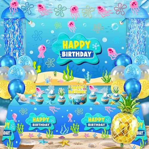 Underwater Theme Birthday Party Decorations Set – 146 Pcs Cartoon Ocean Party Supplies with Large Backdrop, Tablecloth, Jellyfish Paper Lanterns, Foil Pineapple Balloon for Kids Boys Girls