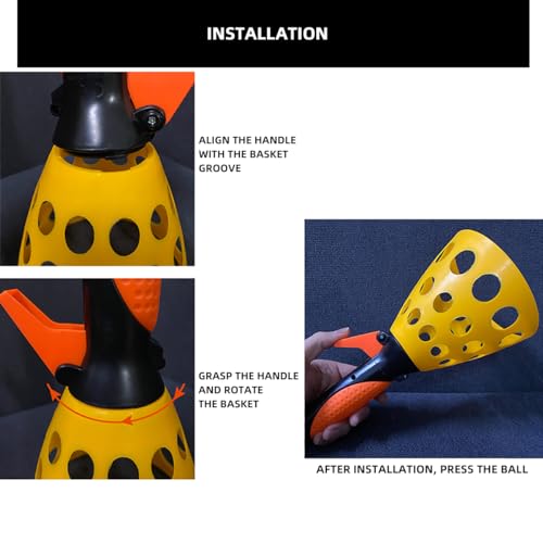 It comes in two pieces, the handle is aligned with the basket and twist it to lock it. Hold the ball holder basket in your hands, press the trigger to launch the ball and another one uses the basket to catch it. Even a kid can do it easily.