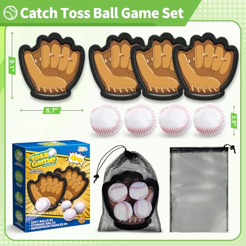 SpringFlower 4 Pack Catch and Toss Ball Game,Toddler Baseball Catch and Toss Ball Set,Outdoor Sport Yard Beach Pool Game Toy,Boys & Girls Toy for Kids Toddlers, Fun Idea Gift for Kids