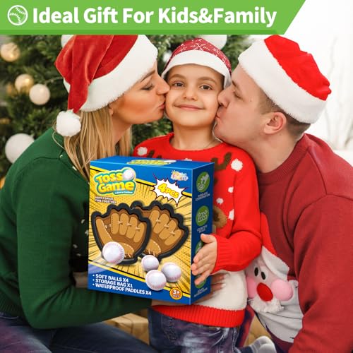 【Catch And Toss Ball Set】This exciting toss catch ball set includes everything you need for endless fun! The set comes with 4 durable paddles, 4 soft balls, and a storage bag for easy storage and carry. Whether you’re heading to the pool, beach, or backyard, this toddler baseball glove set ensures you’re ready for action. Perfect for family activity, yard, or any party time, this catching ball set will provide hours of entertainment for everyone.