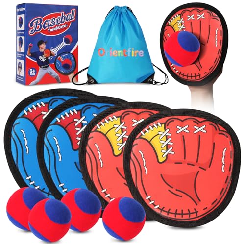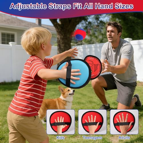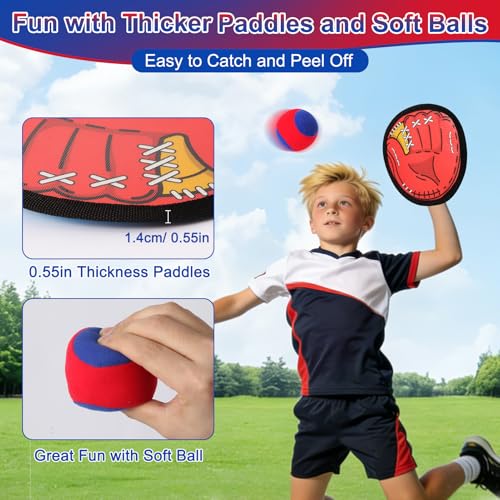 Toss and Catch Ball Game Set, Outdoor Beach Yard Pool Balls Toys, Family Kids Teens Baseball Throwing Catching Game, Birthday Gifts for 3 4 5 6 7 8 9 10 Year Old Boys Girls (4 Paddles & 4 Balls)