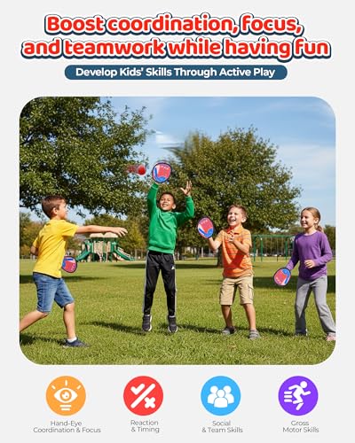 PROMOTES ACTIVE PLAY & SKILL DEVELOPMENT: Encourages hand-eye coordination, throwing and catching skills, and outdoor activity. A perfect screen-free game to keep kids moving and engaged while enjoying safe, active fun indoors or out
