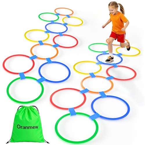 Hopscotch Rings, 2-Set – 20 Round Hoops (11-inch) + 30 Connectors, Agility Rings for Kids, Builds Gross Motor Skills, Preschool & Kindergarten PE, Indoor/Outdoor Playground Obstacle Course