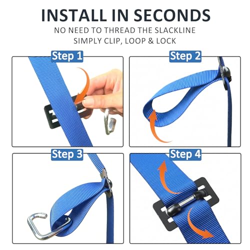 🦿DURABLE AND SAFE – High-quality PE material and High-strength anti-rust treated steel components will last for years. Each Ninja Warrior accessory is tested for a 600-pound load capacity. We upgraded the “ONE-PIECE” and coated design buckle and solved the problem of slack line tearing.