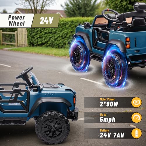 2 Seater 24V Ride on Toys for Big Kids, Licensed Ford Bronco Raptor, Powerful Wheel with Remote Control, Headlight/Music Player/Suspension Function, Durable Tires (Blue)