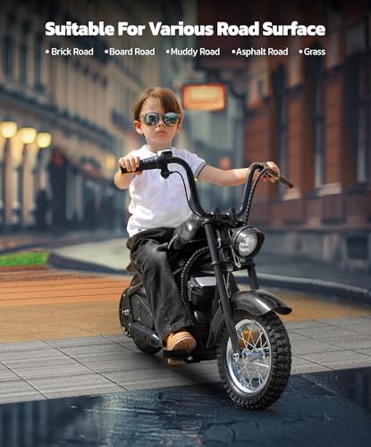 【High-Performance Electric Motorcycle】ELEMARA electric motorcycle for kids equipped with a 24V 250W powerful chain-driven motor, reaching speeds of up to 15mph and 10 Miles max range while its 150lb max weight capacity ensures fun for kids of various sizes.