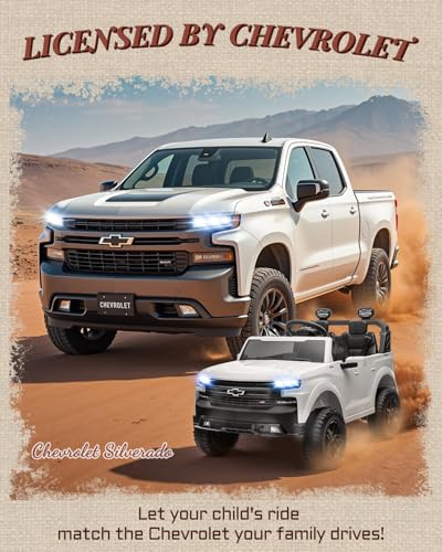 LICENSED CHEVROLET SILVERADO DESIGN: This officially licensed Chevrolet Silverado ride on toy delivers a realistic driving experience with detailed bodywork, bold front grille, and authentic logos. Perfect ride on car for kids who love powerful trucks and want a stylish electric car for kids.