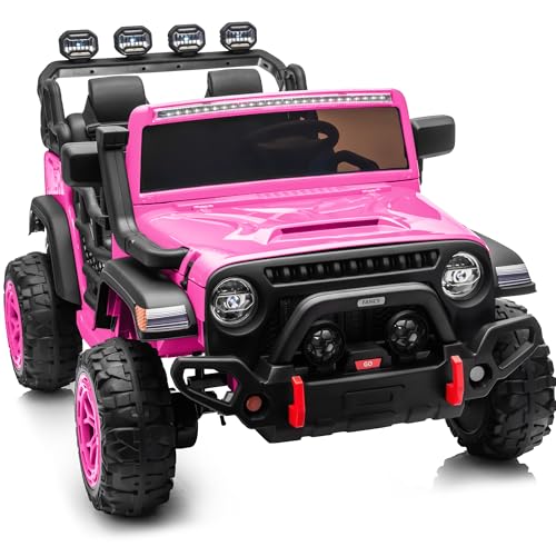 Hikiddo 2 Seater Electric Ride on Car Truck, 24V 4×4 Ride on Toy for Kids 4-8 with Remote Control, EVA Tires – Pink