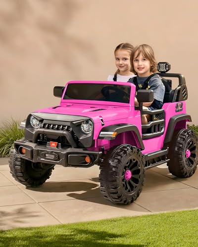 20″ 2-Seater Design: This 2 seater ride on car with remote control features a genuine 2-seater design, equipped with spacious 20″ seats. This 24V ride on car provides kids with comfortable and roomy seating space, delivering a joyful companionship experience for siblings or friends.