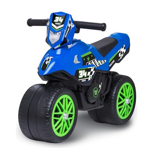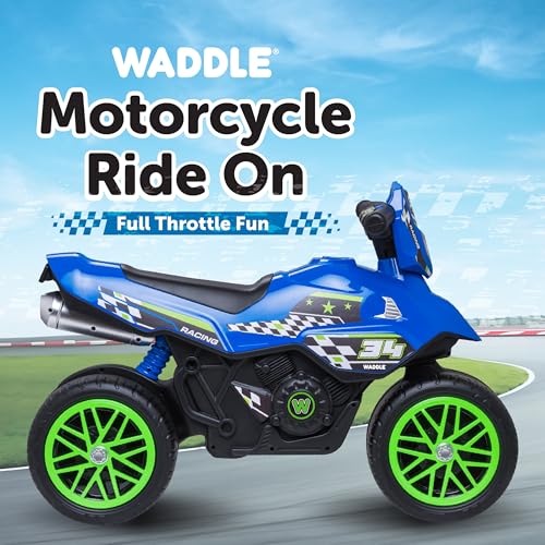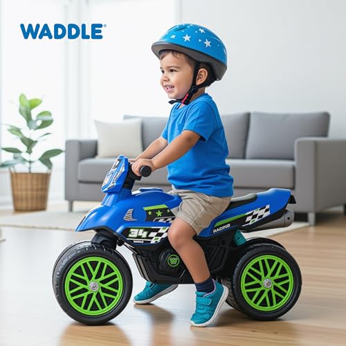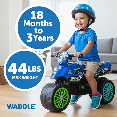 Waddle Kids Motorcycle Balance Bike – Toddler Ride on Toys w/Sounds, Wide Wheel Base, Rubber Coated Wheels, Foot to Floor Toddler Car Up to 44 Lbs, Motorbike for Kids Ages 18 Months to 3 Yrs, Blue