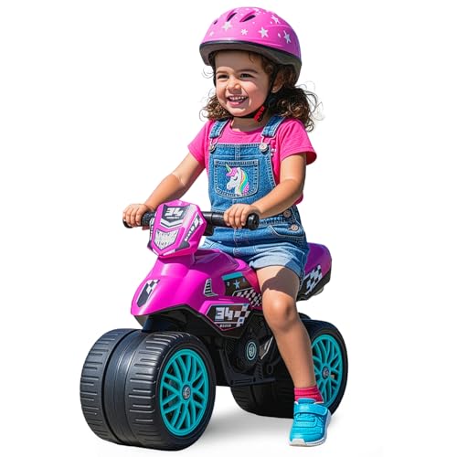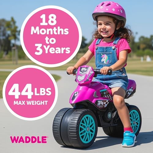 Waddle Kids Motorcycle Balance Bike – Toddler Ride on Toys w/Sounds, Wide Wheel Base, Rubber Coated Wheels, Foot to Floor Toddler Car Up to 44 Lbs, Motorbike for Kids Ages 18 Months to 3 Yrs, Pink