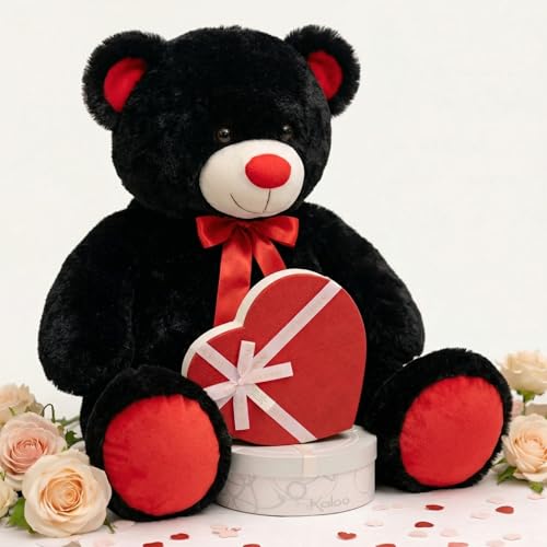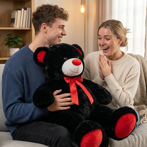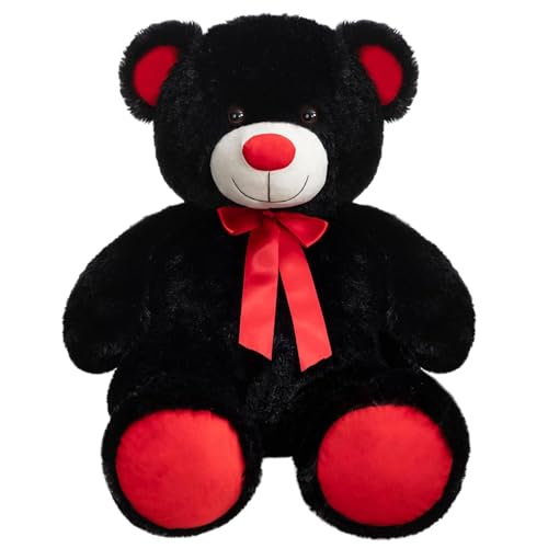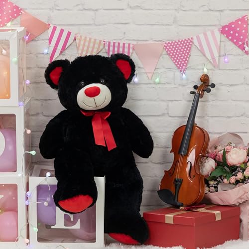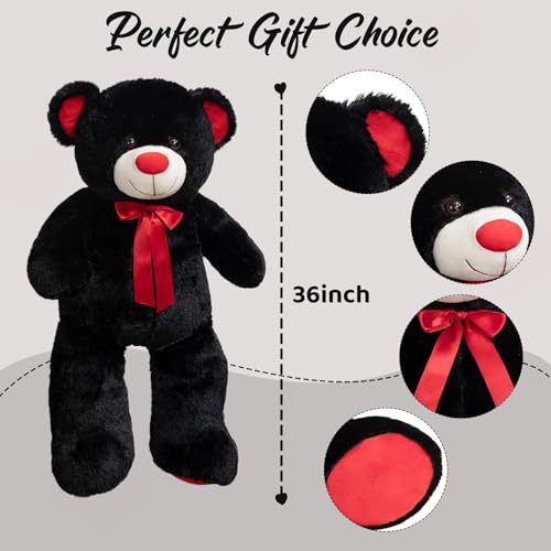 Big Teddy Bear Stuffed Animal Giant Teddy Bear Plush with Red Ribbon Bow Valentine’s Day Plush Toy Gift for Girlfriend Bride 36 inch Black