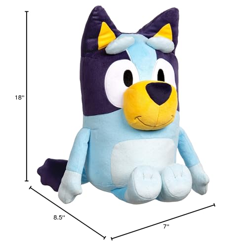 Bluey Doll (Jumbo size,18”): Bring home the biggest and best cuddles with the big Bluey stuffed animal, Best Mate Jumbo Plush! Standing extra-large in size, this super-soft Bluey plush friends stuffed toy is the perfect companion for Bluey fans of all ages. Whether it’s time for play, a Bluey marathon, or winding down with a bedtime story, the Bluey stuffed animals are always ready for a hug. This oversized bluey characters plush is crafted with ultra-soft deluxe materials that feel gentle to the touch and comforting to cuddle. Designed for durability, she’s made to withstand countless snuggles, naps, and adventures. At just the right jumbo size, Bluey stuffy delivers the biggest hugs possible, giving kids a sense of comfort, security, and joy. Whether sitting proudly on the bed, traveling along on adventures, or being held tight during quiet moments, Bluey squishmallow quickly becomes a cherished friend. Perfect as a gift for birthdays, holidays, or special surprises, this cuddly Bluey plush will delight toddlers, preschoolers, and kids who can’t get enough of their favorite Heeler pup. With the Best Mate Bluey stuffed animal plush, every day is hug time!